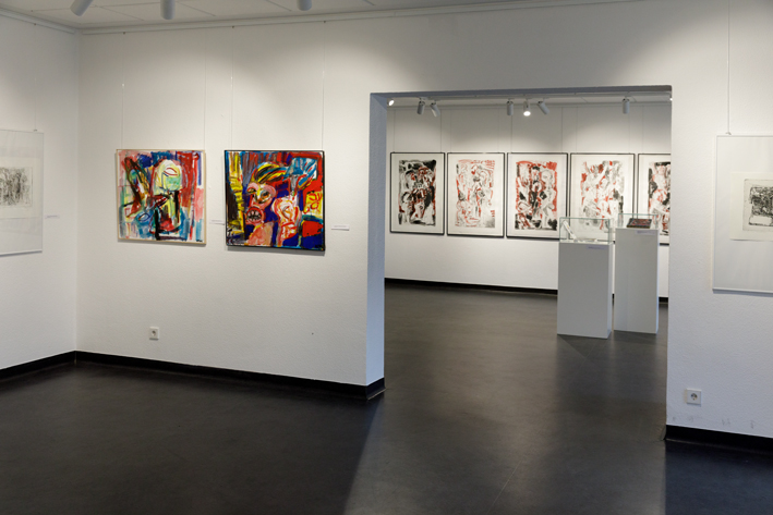 Bild oben: Aus­stel­lungs­an­sicht zu Horst Peter Mey­er, “Okto­ber­brot” - Bil­der. Blät­ter. Bücher.